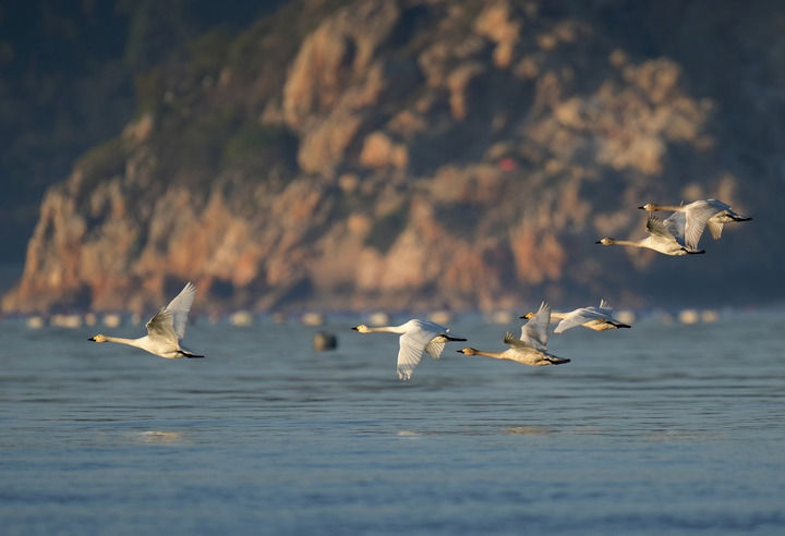 一群天鵝飛過(guò)閩江河口濕地上空(2023年1月31日攝)。新華社記者 魏培全 攝